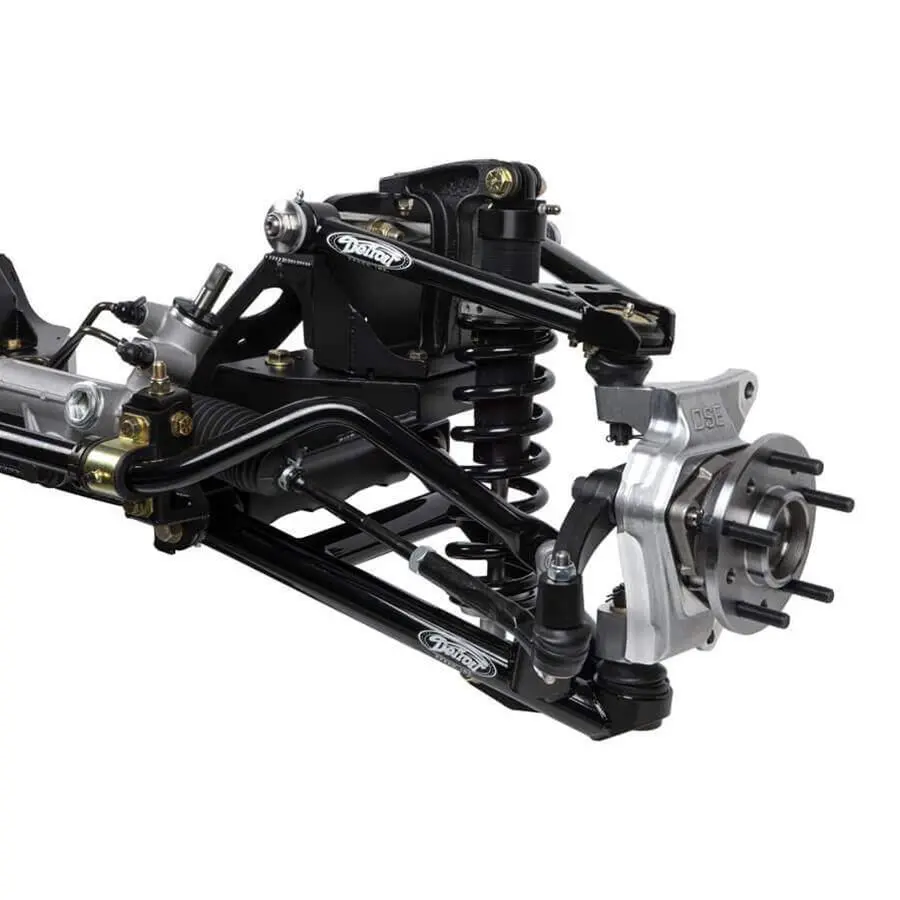 Detroit Speed SpeedMAX front suspension packages are designed with no compromises and exclusive DSE suspension geometry for superior handing and ride quality at a lowered ride height. These kits are 100 percent bolt-on front suspension systems, based on the later model GMT800 Silverado truck applications. Kits include DSE forged aluminum uprights with modern truck hub pack wheel bearings. These kits can be installed in stock location or 1 in. forward for improved wheel and fender alignment. the DSE “Detroit Tuned” aluminum body coilover shocks and springs allow for ride height adjustment and spring rate tuning without having to disassemble the control arms. Body panels and engine do not need to be removed for installation of these SpeedMAX suspension kits.