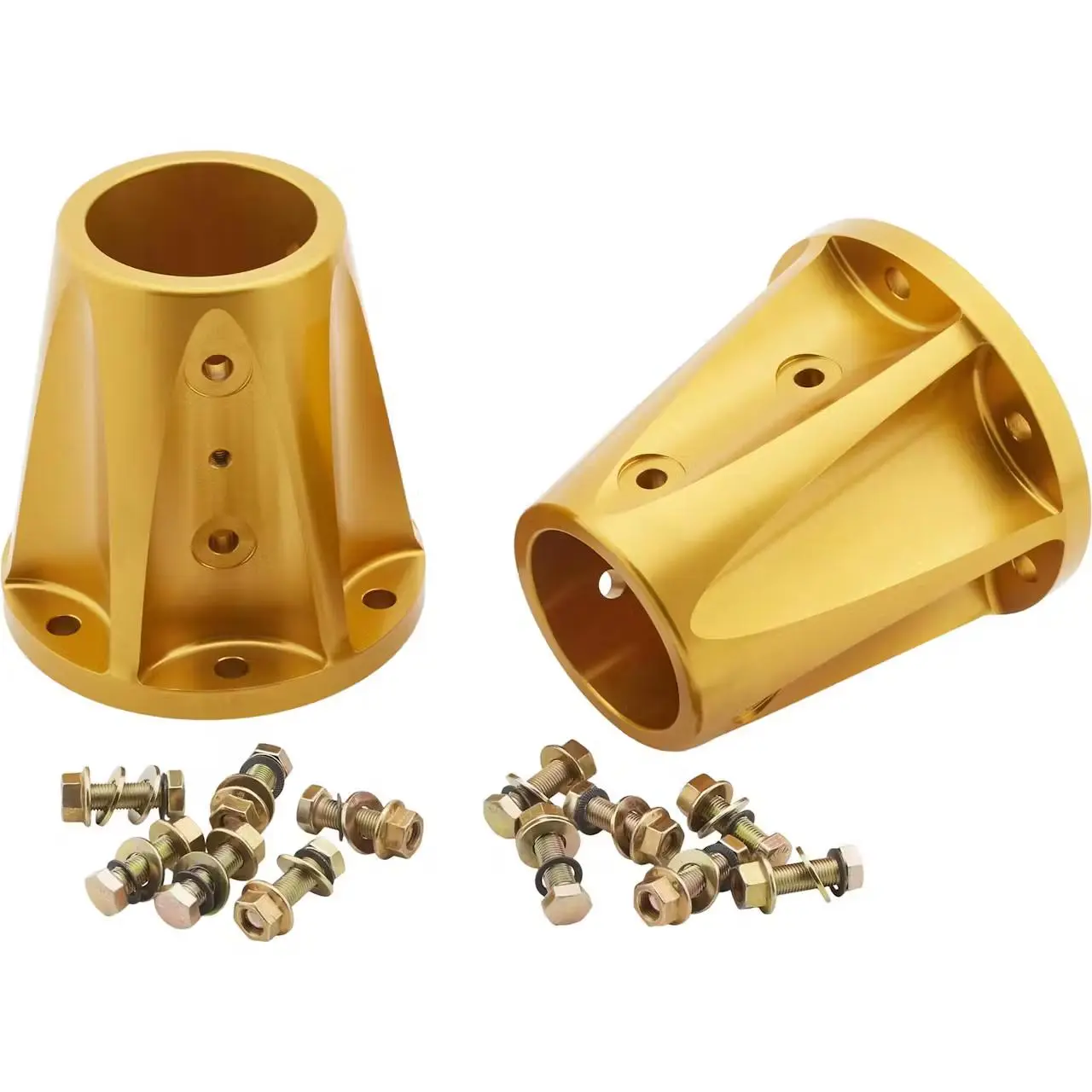 Shallow aluminum side bells increase side bell rigidity by almost 75%! Less flex = more traction. Heavy duty tube collars remain straight and true in the hardest of crashes. Tubes are held to the bell by (6) Grade L9 hardened 7/16″ studs. The EZ system adds 8 lbs to the overall weight of the unit.