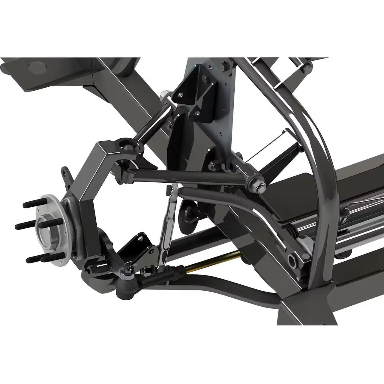 - Front suspensions deliver optimal negative camber gain to keep tires planted on the ground