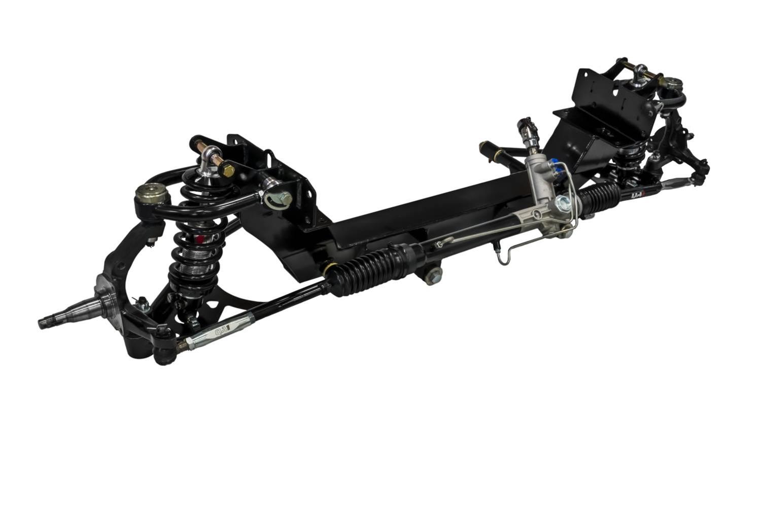 QA1 1961-71 D100 independent front suspensions update your classic 2WD Dodge truck with coilover shocks and rack-and-pinion steering. The IFS kits instantly transforming the old-school feel of leaf springs and a straight axle to greatly enhanced truck performance with late-model drivability and the perfect lowered stance.