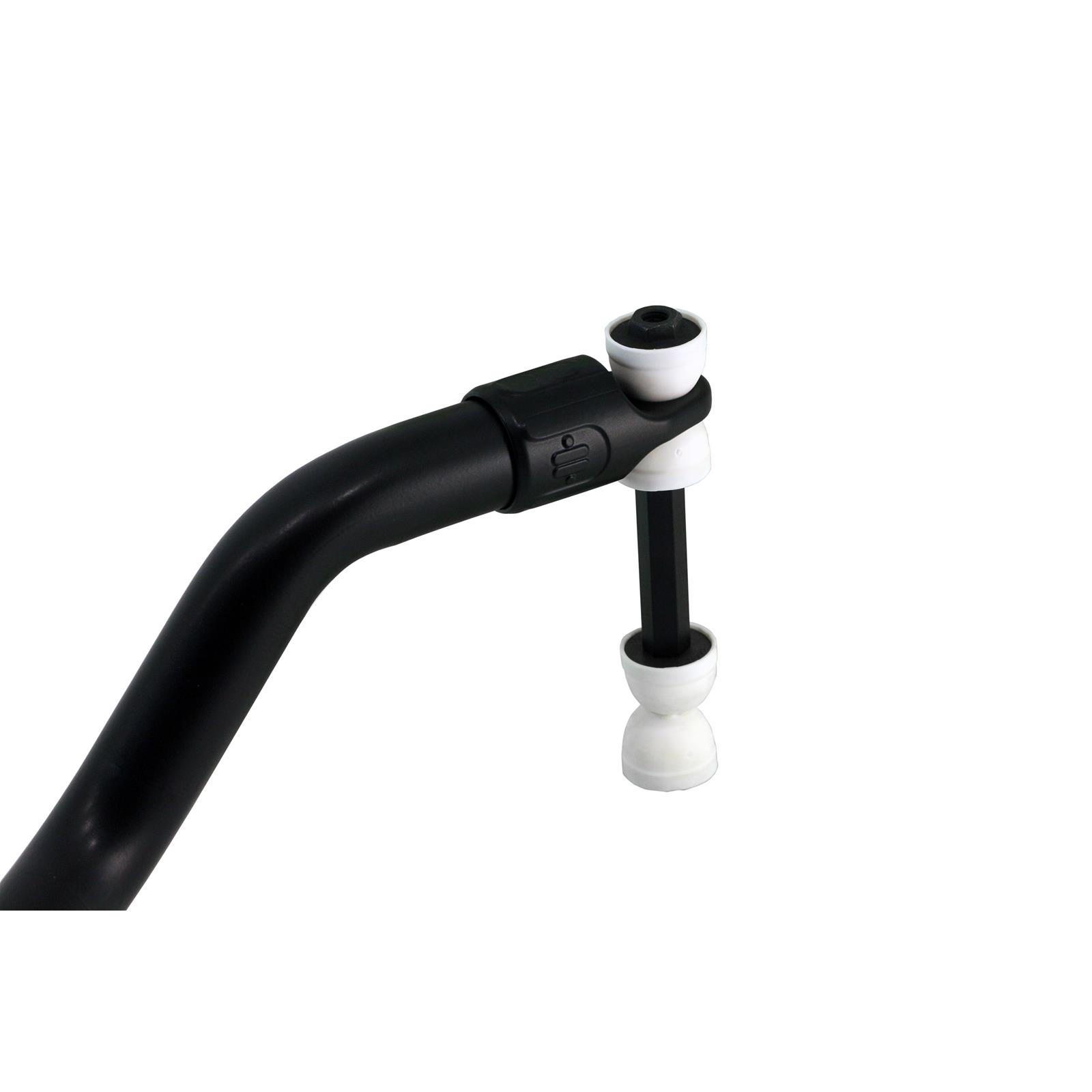 * Front sway bar reduces body roll and creates room for wider front tires. Includes billet aluminum frame straps (anodized black) and low friction bushings.