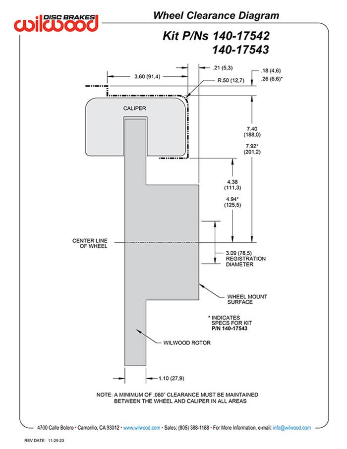 • 12.88 in. and 14.00 in. rear kits feature Wilwood’s motorsports-proven rigid Superlite four piston calipers